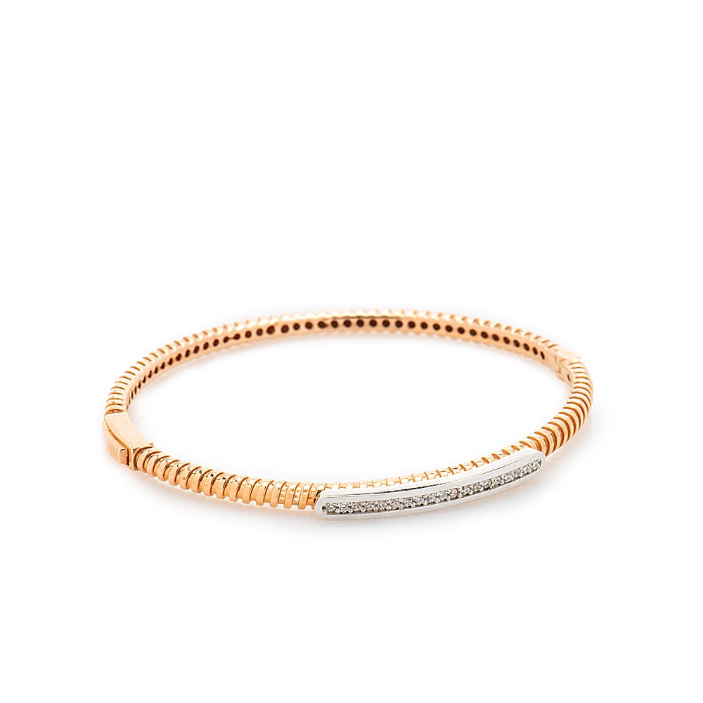 Твърда гривна от бяло и розово злато, с бели цирконий, 11,49гр.